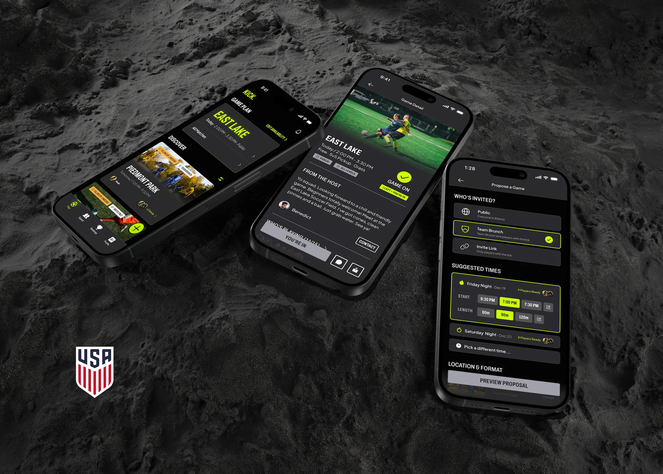 Achieved a System Usability Scale (SUS) score of 83.75 on core tasks. We rejected the industry standard 'ticket sales' model in favor of a decentralized social model that celebrates the sport's organic nature, unifying the 'patchwork' of isolated sub-communities. The project was handed off to U.S. Soccer for development.