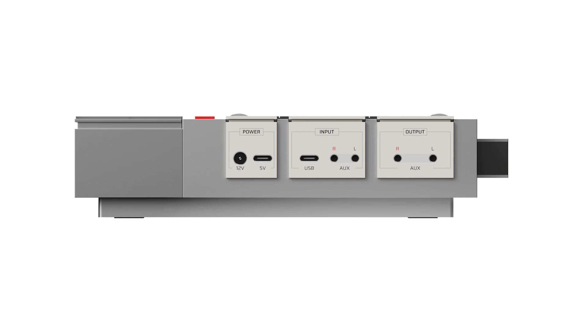 On the rear, Power, Input, and Output buttons sit above each port, allowing users to switch between sources and route audio to speakers and headphones. The clear layout ensures setup and transitions are simple.